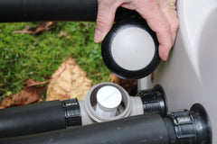A 6″ inflatable thermal cover sits on the spa (not floating on the water) with locking straps across the top. Underneath it a floating thermal blanket sits directly on the waterline — two layers trapping the heat the 1940 W heater has just put in. On a 760 L tub, cover discipline is the single biggest running-cost lever. Keep it on between sessions.