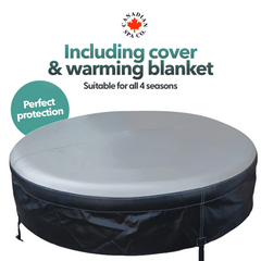 Yes. The Grand Rapids runs in ambient temperatures below 0 °C and the heater holds the water within 1 °C of your setpoint with the cover on. The outer is reinforced marine-grade vinyl — the same spec used on rapid-response inflatable lifeboats on British rivers and Canadian lakes, so cold-water abrasion is not where this material gives up. "We use in all weathers" and "operational below zero" are both verbatim from owner reviews. The 6″ inflatable thermal cover is core kit for that, not an accessory.