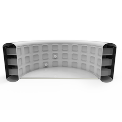At 74 cm (29″) of water the tub is deeper than most inflatable rivals — your shoulders sit under the water line on an average-height adult, which is the single biggest comfort lever in a cold UK garden. In a family with mixed heights, a water-filled booster cushion elevates shorter adults or children by a few inches so they sit at the same shoulders-under water line as taller users — the most common accessory owners add at the same time as the spa.
