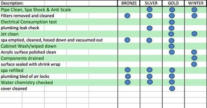 If the spa has a Gazebo fitted or spa is sunk into the ground which is restricting access the technician will only be able to perform part of his duty.