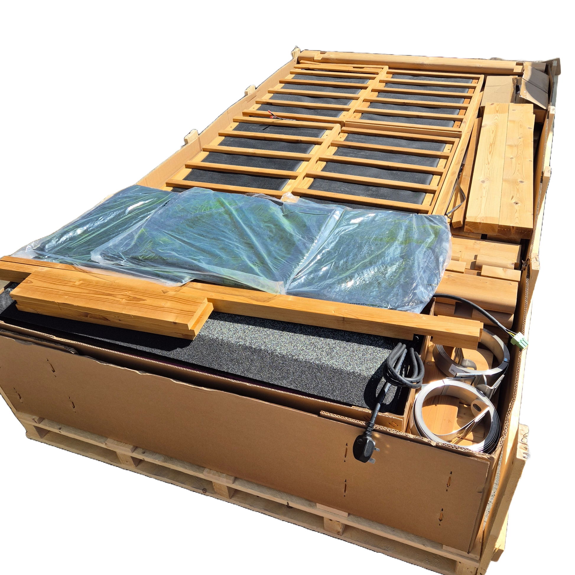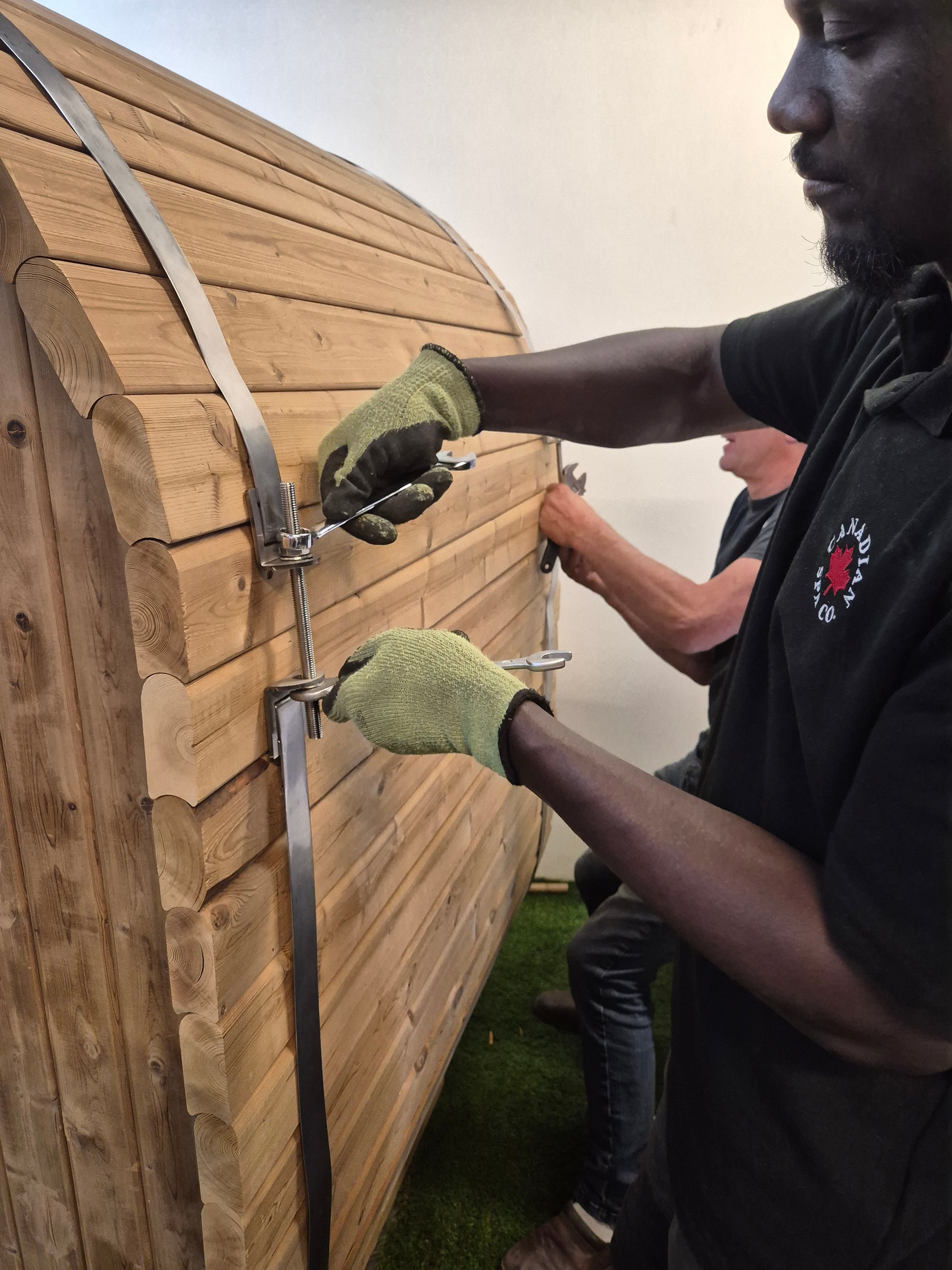 Outdoor Oval Sauna Delivery and Set-Up. Deliver to position of choice, assemble, demo, remove packaging.