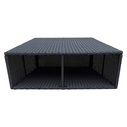 The Side Table features an attractive wicker finish, constructed of a durable, weather resistant, synthetic rattan. It has a hollow side, allowing space for you to conveniently store your towels and other items. This table also doubles as a bar stool that will fit perfectly under your Spa Surround Furniture Bar Table.